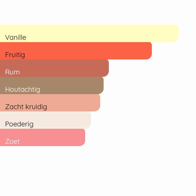 De topnoot bestaat uit zwarte bes. Het hart bevat rum. De basis wordt gevormd door vanille.